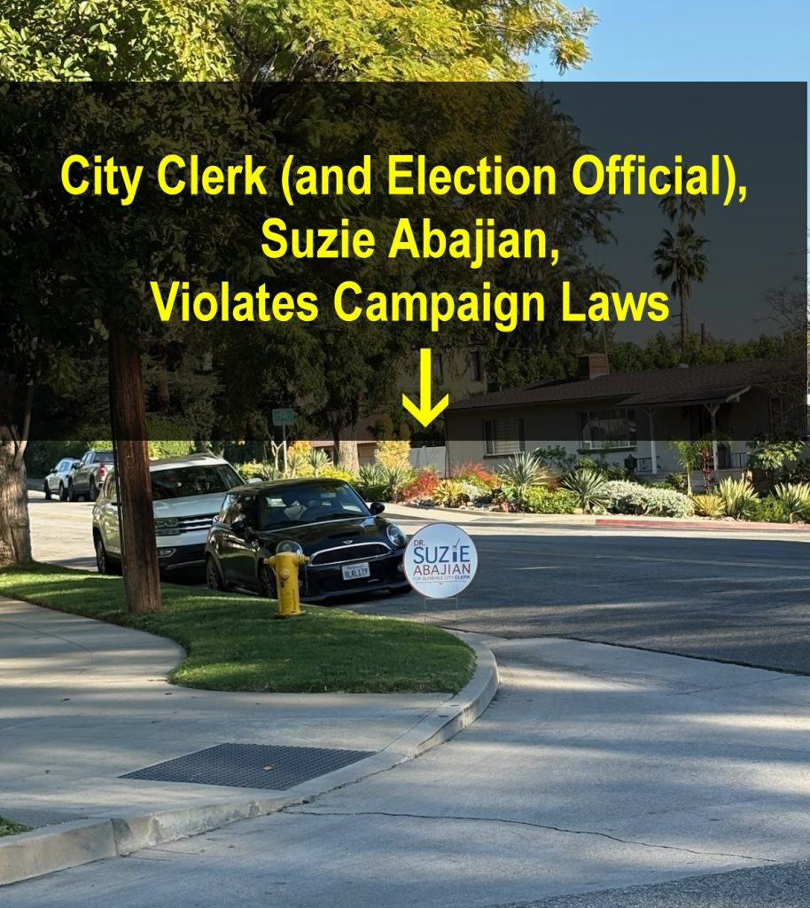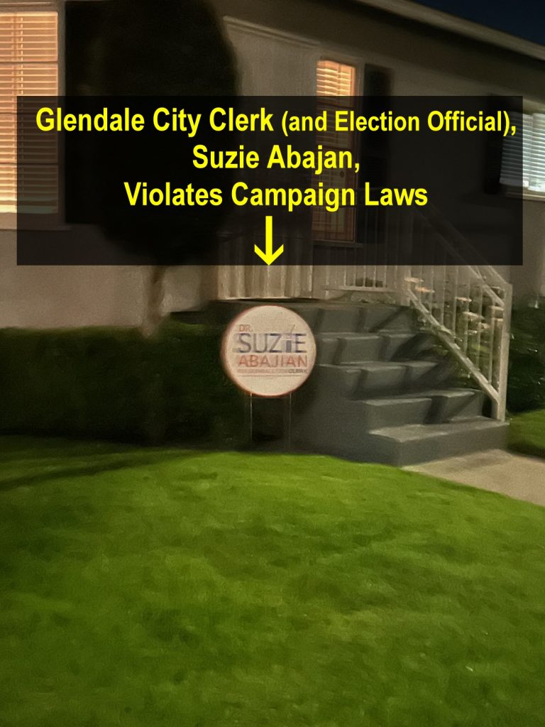 Taking a page from her law-breaking friend, Elen Asatryan’s playbook, Glendale City Clerk, Suzie Abajian starts her campaign with violations.